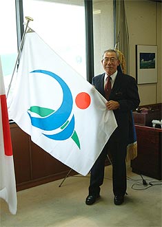 宮古島市の市旗を掲揚する市長職務