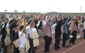 平良市営陸上競技場での郡民大会