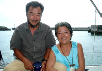 ご夫婦=平良市の荷川取漁港で