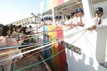 聞いただけでも羨しいこの実習。船長さんも機関士さんたちもしっかりついていて安心万全な体制。港には涙を流し我が子の出航をカラーテープを手に見送る保護者。「蛍の光」に合わせて離岸する船から手を振る子ども達。このシーンを体験できるだけでも入学してよかったと思える。赤道を越えたり、入港したり、漁をしたりと船上での暮らしを想像するだけでもワクワクしてしまう。