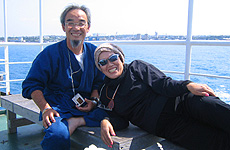 すぐにコーヒーと、パンで遅くなった昼食をとり始めた。この夫妻は平良市の西里通りで寿司店を営んでいる。