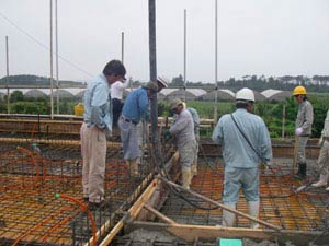スラブ打ちも無事終了して宴も終盤になったころ、二階の仮階段部分で夫が酔って叫んだ。