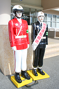 宮古島まもる君は、宮古島警察署管内の道路に設置されている警察官型人形の愛称です。